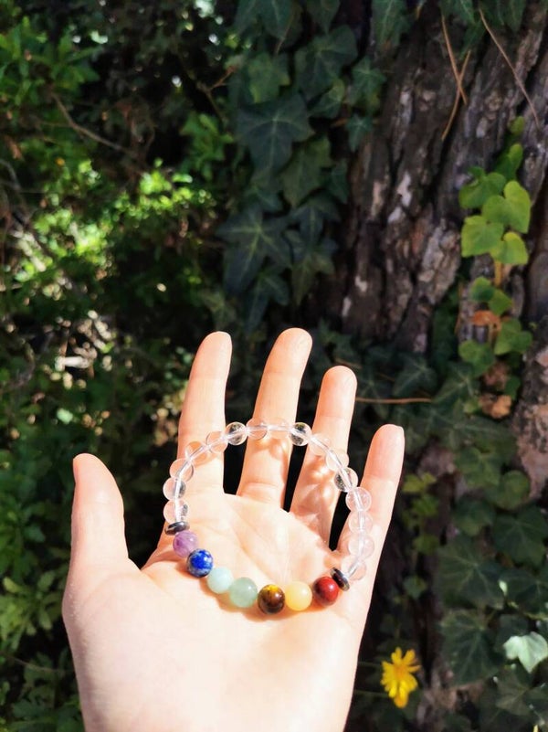 7 chakras Cristal de Roche Bracelet Boules 8mm